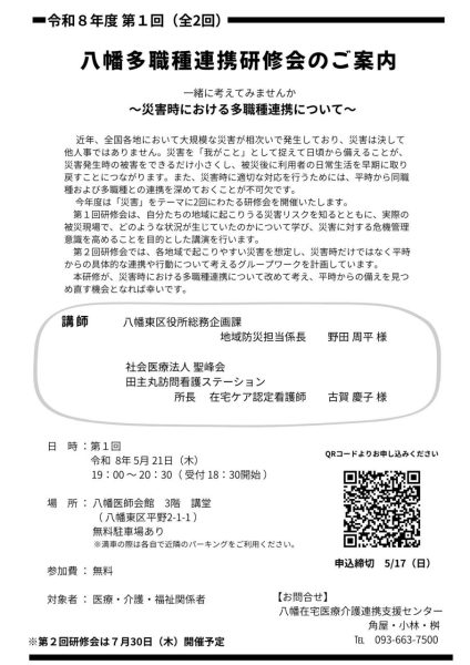 【八幡】令和8年度第1回八幡多職種連携研修会を開催いたします。