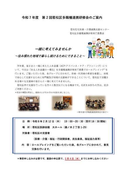 【若松】令和7年度第2回若松区多職種連携研修会を開催いたします。